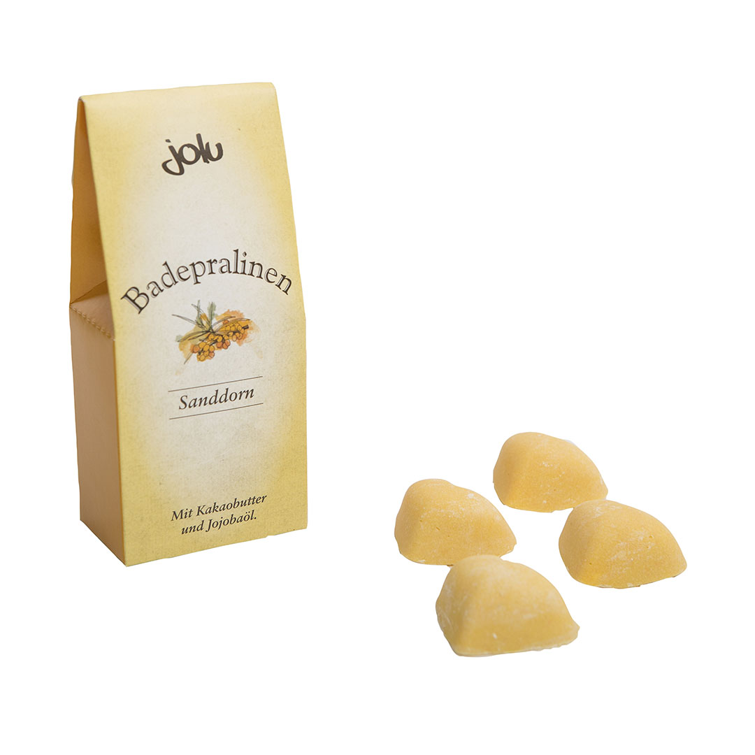 Die Badepralinen von JOLU sind das i-Tüpfelchen eines jeden Badeerlebnis. Ein bis zwei Stück schmelzen im warmen Wasser langsam, pflegen die Haut mit wertvoller Kakao- und Sheabutter oder Jojobaöl.